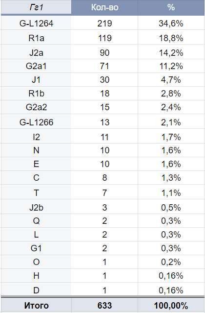 - G-L1264 тоже относится к G-L1266. При этом обе эти ветви являются субкладами G2a2.