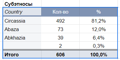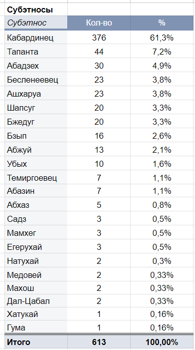 По сравнению с данными за сентябрь, процент кабардинцев еще больше вырос.
