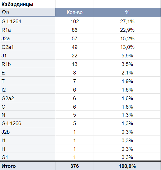 G-Z31459 — попадают в относительно узкую линию возрастом ~ 2000 лет. Преимущественно кабардинская;