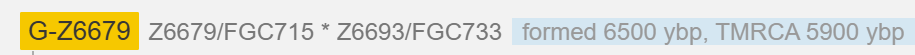 Adam > A0-T > A1 > A1b > BT > CT > CF > F > GHIJK > G > P287 > Y238 > P15 > Z6552 > Y34352 > Z6553 > Z6744 > Z6653 > Z6702 > Z6679 > Z6692 > Z6706 > Z6638 > Z6654 > FGC671 > FGC713 > FGC701 > Z7958 > FGC750 > FGC750 > Z7940