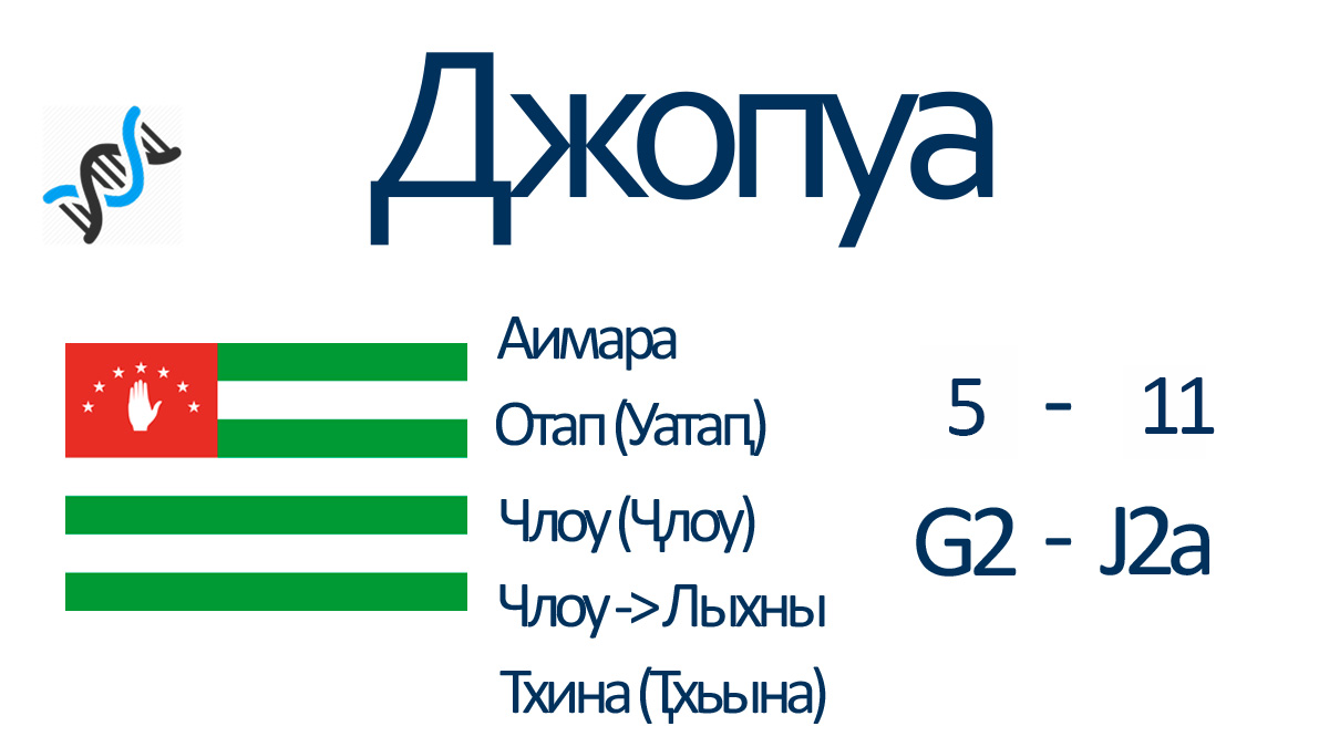 Фамилия: Джопуа (Џьапуа)Этнос: Абхаз (абжуец)Населенный пункт: Аймара (Аимара)Гаплогруппа: J2a >> M67 >> Y30811 >> Y61539 По результатам теста Джопуа совпал с рядом других представителей рода Джонуа-Джопуа. История Протестированный принадлежит к патронимии (абиԥара) Ӷьаџь-иԥацәа из поселка (аҳабла) Аимара. Родословная сдавшего: Ӷьаџь > Марыҟәа > Урыс > Гәаџь > Ҷыҷ > Радион > Хьрыԥс > Саид. Шалва … Читать далее