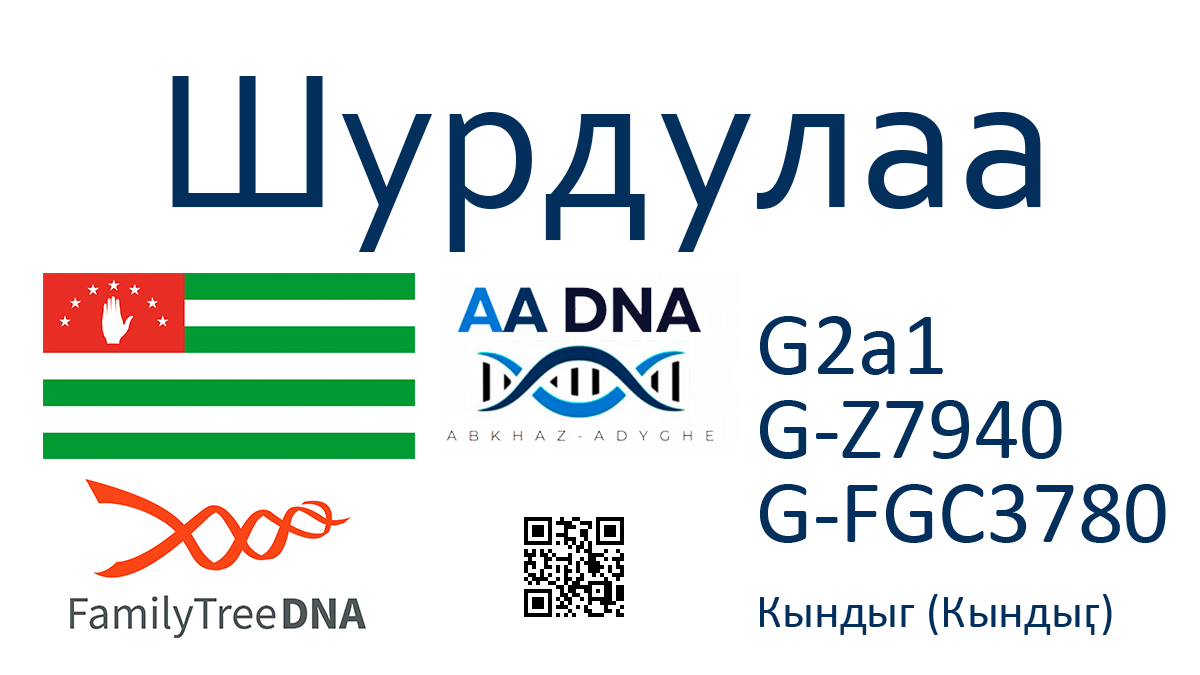 Фамилия: Шурдулаа (Шәырдлаа)Субэтнос: Абхаз (абжуец)Населенный пункт: Кындыг (Кындыӷ)Гаплогруппа: G2a1 >> ZS940 >> FGC3780 История Протестированный принадлежит к абхазской крестьянской фамилии Шәырдлаа из села Кындыӷ. По посемейным спискам за 1859 г. в селе Кындыг проживало 3 двора этой фамилии: Шәырдлаа Хәыча Гәыгә-иԥа, Шәырдлаа Абрагь Гәыгә-иԥа, Шәырдлаа Урыс Гәыгә-иԥа. Из чего можно сделать вывод, что фамилия происходит … Читать далее