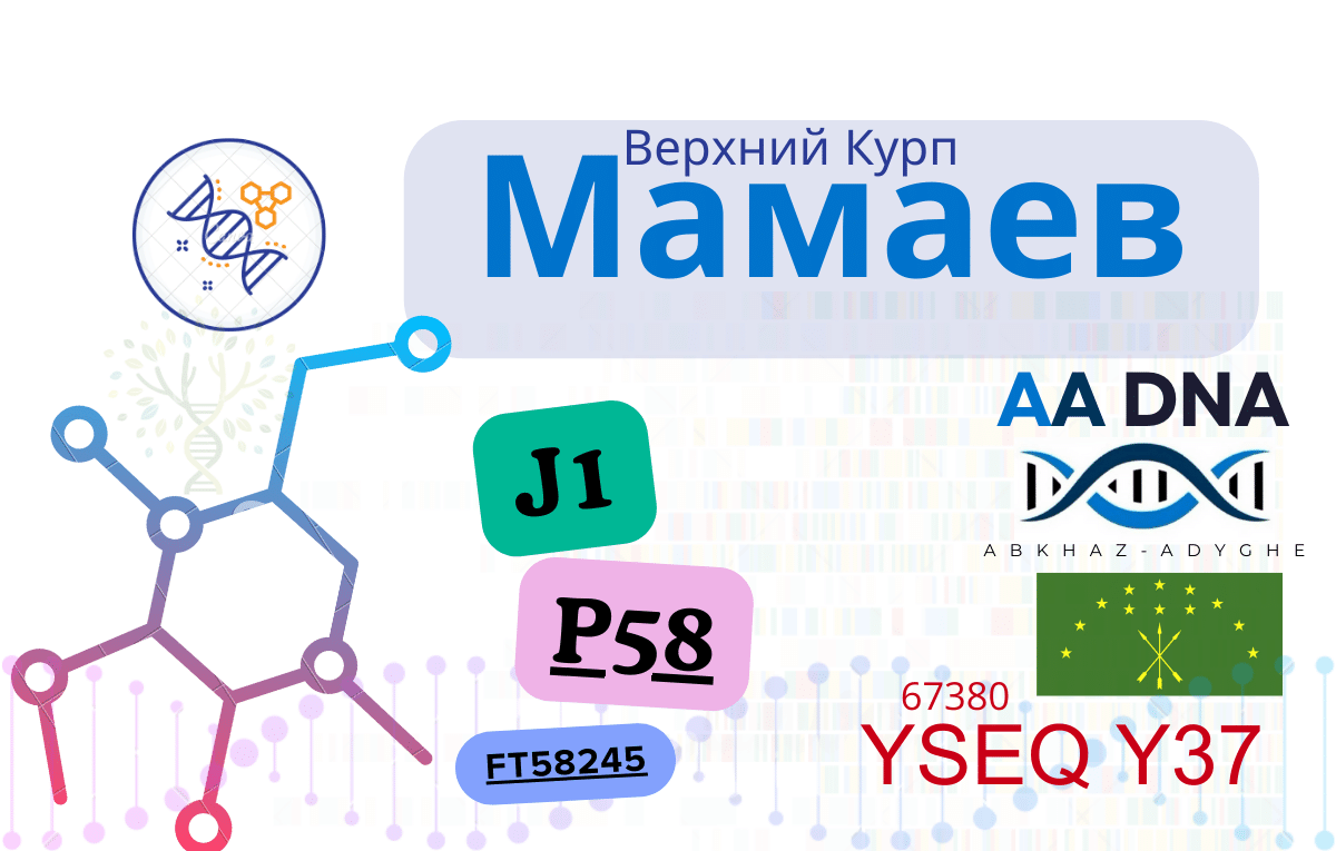 Фамилия: МамаевСубэтнос: КабардинецНаселенный пункт: Верхний Курп (Исламово)Гаплогруппа: J1 >> P58 >> Z2324 >> FT58245 Мамаевы встречаются в селениях Исламей терского и баксанского районов КБР. По результатам ДНК теста выявлено потенциально близкое совпадение с Фокичевым из с. Хамидие (Хьэпцӏей). С баксанским Мамаевым протестированный не совпал. История В «Посемейном списке аула Бековича-Черкасского» за 1862 год упоминается уздень … Читать далее