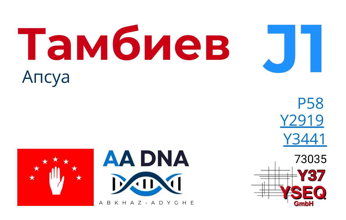 Фамилия: ТамбиевСубэтнос: Абазин ашхарец (чегереевец) Населенный пункт: Шахгиреевский, ныне Апсуа, КЧР Гаплогруппа: J1 >> P58 >> Y2919 >> Y3441 Иногда мы обнаруживаем единичные результаты и не может ни с кем связать. Проходит время и появляются новые тесты и картина совсем меняется. Эта линия J1 представлена большим числом абхазо-адыгов. К ним относятся:Цугба, Квачба, Харбузов, Ныров, Дармилов … Читать далее