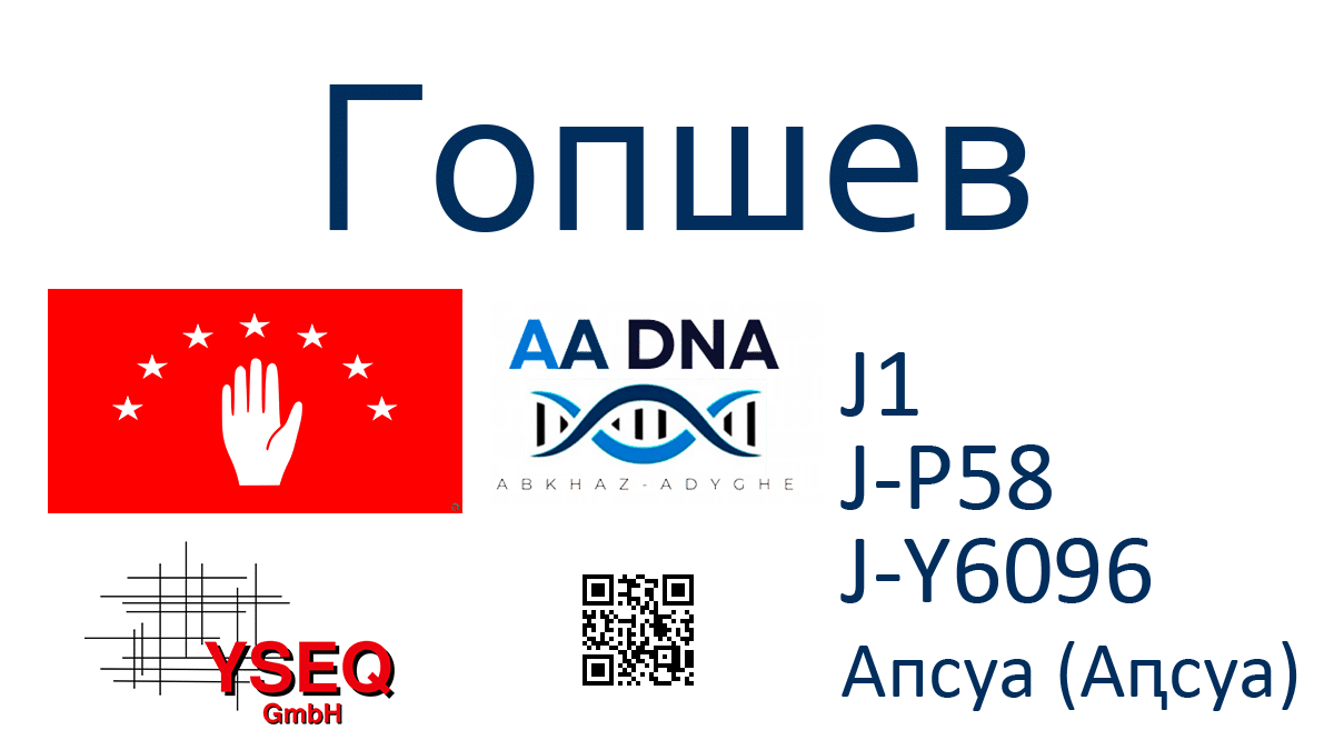 Фамилия: Гопшев (Г1вапщ / Ҩаԥшь)Субэтнос: Абазин (Ашхарец-чегереевец)Населенный пункт: АпсуаГаплогруппа: J1 >> P58 >> Y2919 >> Y6096 История По результатам теста Гопшев попал в абхазо-адыгский пучок внутри Y6096, где помимо него находятся абхазо-абазины (Цикисов, Квачба, Дармаа-Дармилов, Озов, Лахов, Цугба, Докумов, Жиба) и черкесы (Ниров, Афаунов, Харабузов). При этом большая часть фамилий объединена общим происхождением из общества … Читать далее