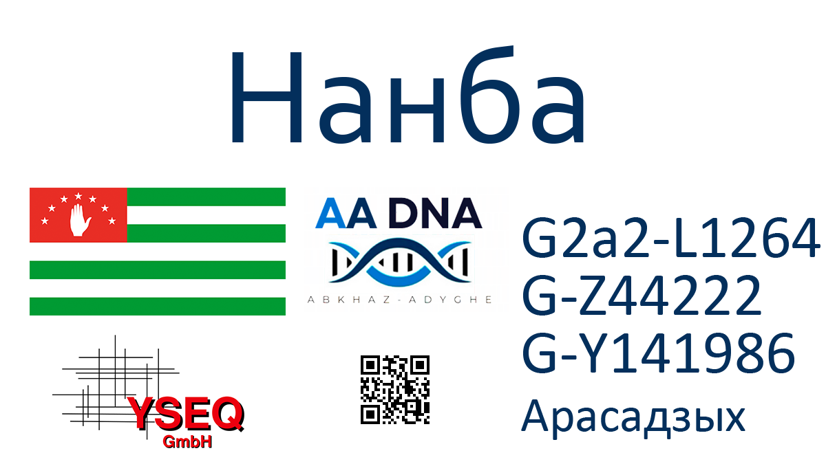 Фамилия: Нанба Субэтнос: Абхаз (Бзыпец)Населенный пункт: Бармыш (Бармышь)Гаплогруппа: G2a2 >> L1264 >> S9409 >> FTA56546 По результатам теста, протестированный Нанба совпал с ранее протестированным представителем рода Нанба из садзского села Цхьынара (Harmanlı) в Турции, что подтверждает их близкое генетическое родство. Был проведён полный BigY тест в лаборатории FTDNA. Выявлена гаплогруппа G2a2. Ветвь: L1264 >> S9409 >> … Читать далее
