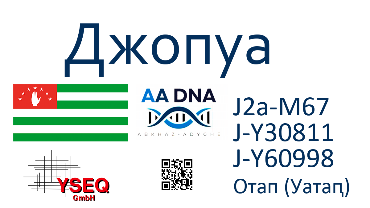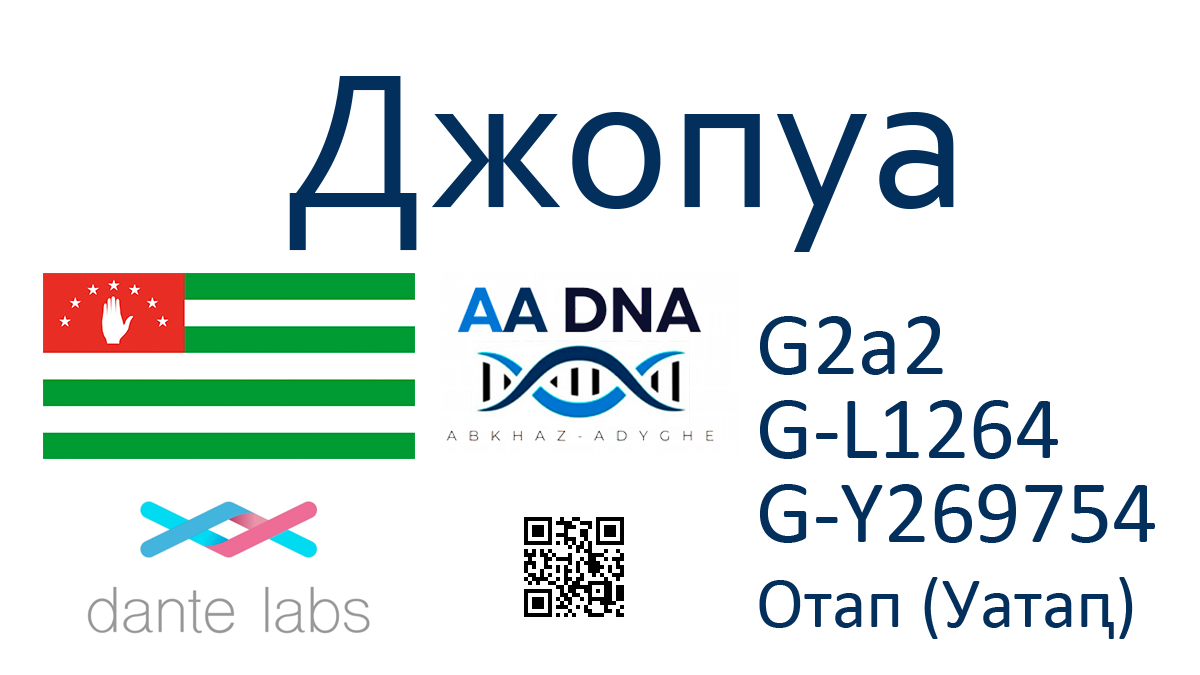 Фамилия: Джопуа (Џьапуа)Субэтнос: Абхазы (Абжуйцы)Населенный пункт: c. ОтапГаплогруппа: G2a2 > L1264 > S9409 > G-Y269754 История Протестированные принадлежат к абхазской крестьянской (анхаҩы) фамилии Джопуа (Џьапуа) из села Отап (Уатаԥ). Согласно легенде (рассказано Джонуа Борисом Георгиевичем со слов Джопуа Франкила Аслановича) в древние времена род Джопуа проживал в районе Сочи (Шәача) в местечке под названием Лес … Читать далее