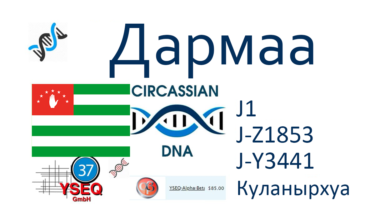 Фамилия: ДармааСубэтнос: Абхаз (Бзыпец)Населенный пункт: Куланырхуа (Ҟәланырхәа)Гаплогруппа: J1 > J-P58 > J-Y3441 История Дармаа (Дарымба) было довольно многочисленной фамилией до махаджирства и проживала в ряде сел Горной Абхазии, а также в некоторых бзыпских селах. На данный момент Дарымба живут в бзыпских и абазинских селах, а также в ряде бзыпских сел абхазской диаспоры: Aksu (Бзыԥҭа), Kayalarmemdühiye … Читать далее