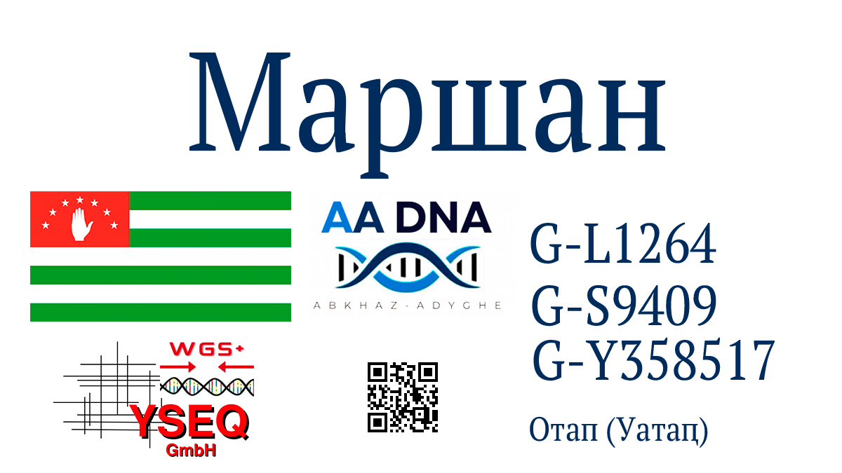 Фамилия: Маршан (Маршьан)Национальность: Абхаз (Псхувец > Цабалец > Абжуец)Населенный пункт: Джгерда (Џьгьарда)Гаплогруппа: G2a2 >> L1264 >> S9409 >> FTH426 История Родословная сдавшего: Карал > Алымбеи > Ҳаиҭбеи > Џьоҭа > … > … > … Протестированный является представителем абхазской княжеской фамилии. Первое документальное упоминание фамилии Маршан относится к 1647 г. в период серии продолжительных конфликтов … Читать далее