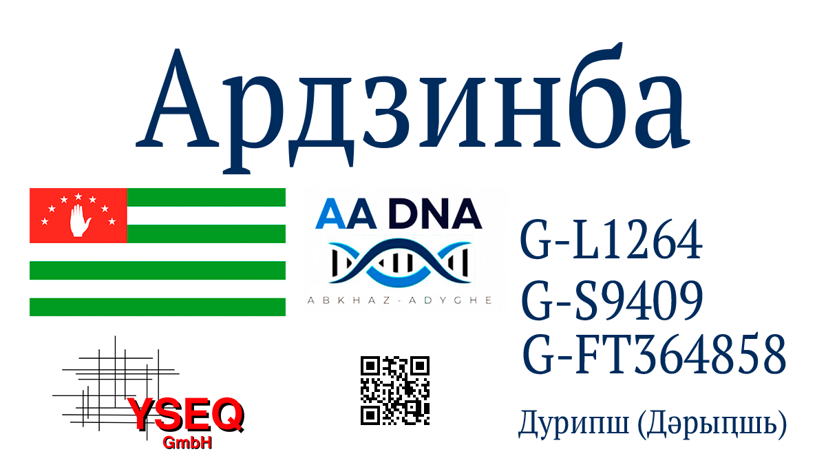 Фамилия: Ардзинба (Арӡынба)Субэтнос: Абхаз (Бзыпец)Населенный пункт: Дурипш (Дәрыԥшь)Гаплогруппа: G2a2 > L1264 > Z31275 > FT364858 История Протестированный относится к патронимии Џьаҭқьар-иԥа, проживающей на территории современного с. Дурипш с первой половины XIX века. Ардзинба – известная абхазская фамилия, ведущая свое начало из общества Псху, где носители указанной фамилии проживали вплоть до 1864 года. Фамильное имя «Ардзинба» переводится с абхазского языка … Читать далее