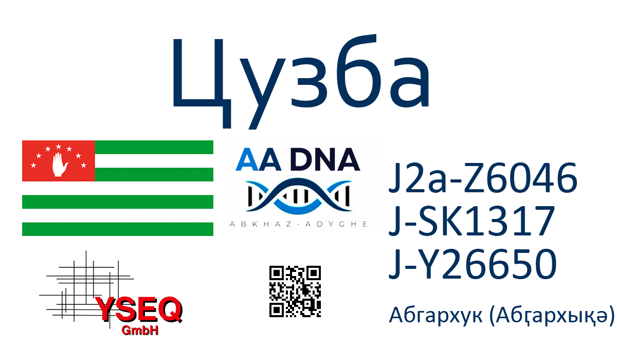 Telegram_logo Фамилия: Цузба (Ҵәызба)Субэтнос: Абхаз (Бзыпец)Населенный пункт: Абгархук (Абӷархықә)Гаплогруппа: J2a >> SK1317 >> J-Y26650 История По легенде род Цузба выходцы из-за хребта (Нхыҵ). Тамга Исследовано 37 маркеров в лаборатории YSEQ. Выявлена гаплогруппа J2a. Наиболее вероятный субклад SK1317 >> Y26650 Полная линия:Adam > A0-T > A1 > A1b > BT > CT > CF > F > GHIJK > HIJK > … Читать далее