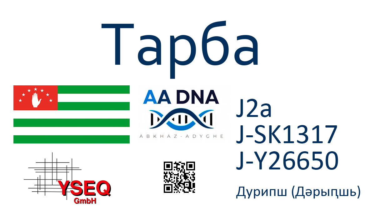 Фамилия: Тарба (Ҭарба)Субэтнос: Абхаз (Бзыпец)Населенный пункт: ЛыхныГаплогруппа: N1a >> N-VL67 >> N-VL83 Это уже третий представитель рода Тарба попавший в данную ветвь. Первый Тарба из села Баслаху абжуйской Абхазии и второй Тарба из села Куланырхуа бзыпской Абхазии. История Родословная: Чагәын > Гыд > Борис > … > … Гыд Чагунович, представитель этой ветви рода, был … Читать далее