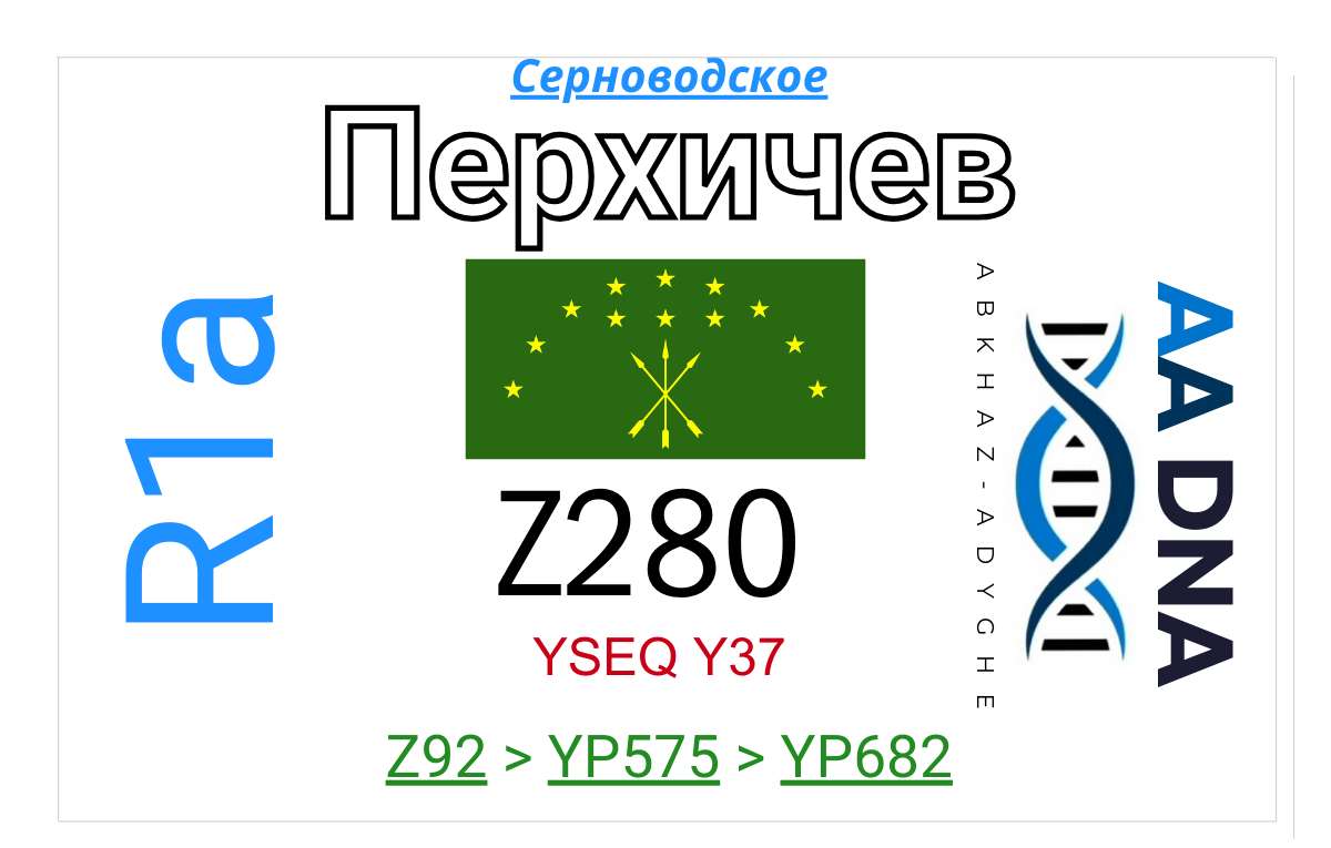 Фамилия: ПерхичевСубэтнос: КабардинецНаселенный пункт: Хутор Испирова, ныне c. Серноводское (Ставропольский Край).Гаплогруппа: R1a >> Z92 >> YP682 Протестирован второй представитель фамилии Перхичев и он совпал с первым из с. Серноводского Ставропольского края (см. таблицу ниже). Оба попадают в редкую ветвь возрастом около 1800 лет, в которую из адыгов пока попадают только Шерхов из Заюково, Жигатов и Бозиев. … Читать далее