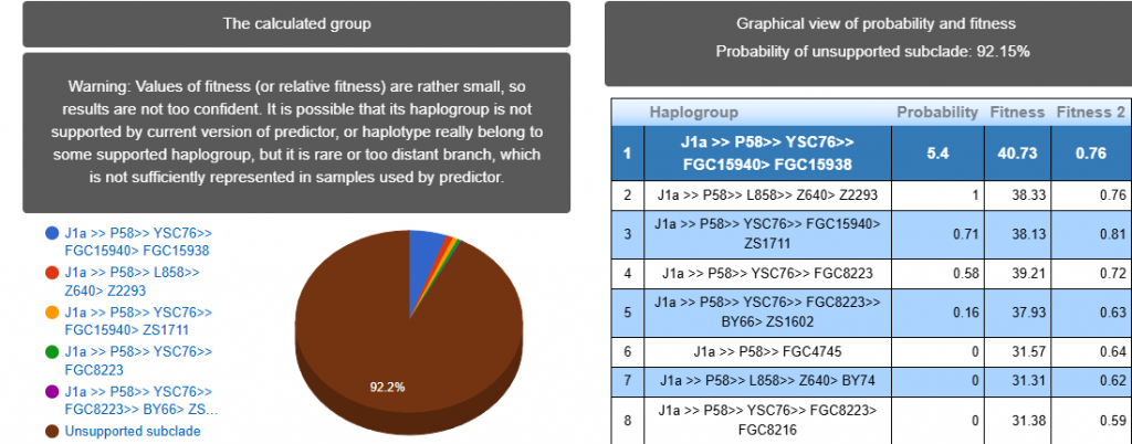 Выявлена гаплогруппа J1. Наиболее вероятный субклад J-P58 >> Y2919 >> Y6096