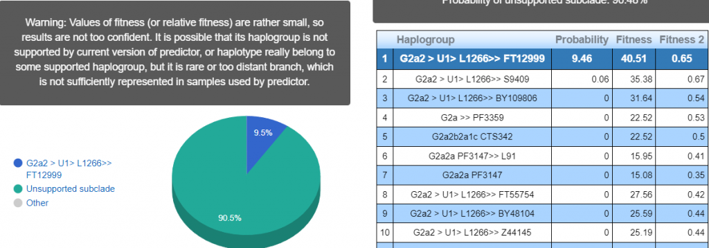 Выявлена гаплогруппа G2a2. Субклад G-L1264 >> Y87806