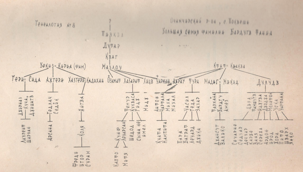 Генеалогия рода Тания из с. Пакуаш (на 1985 г.).