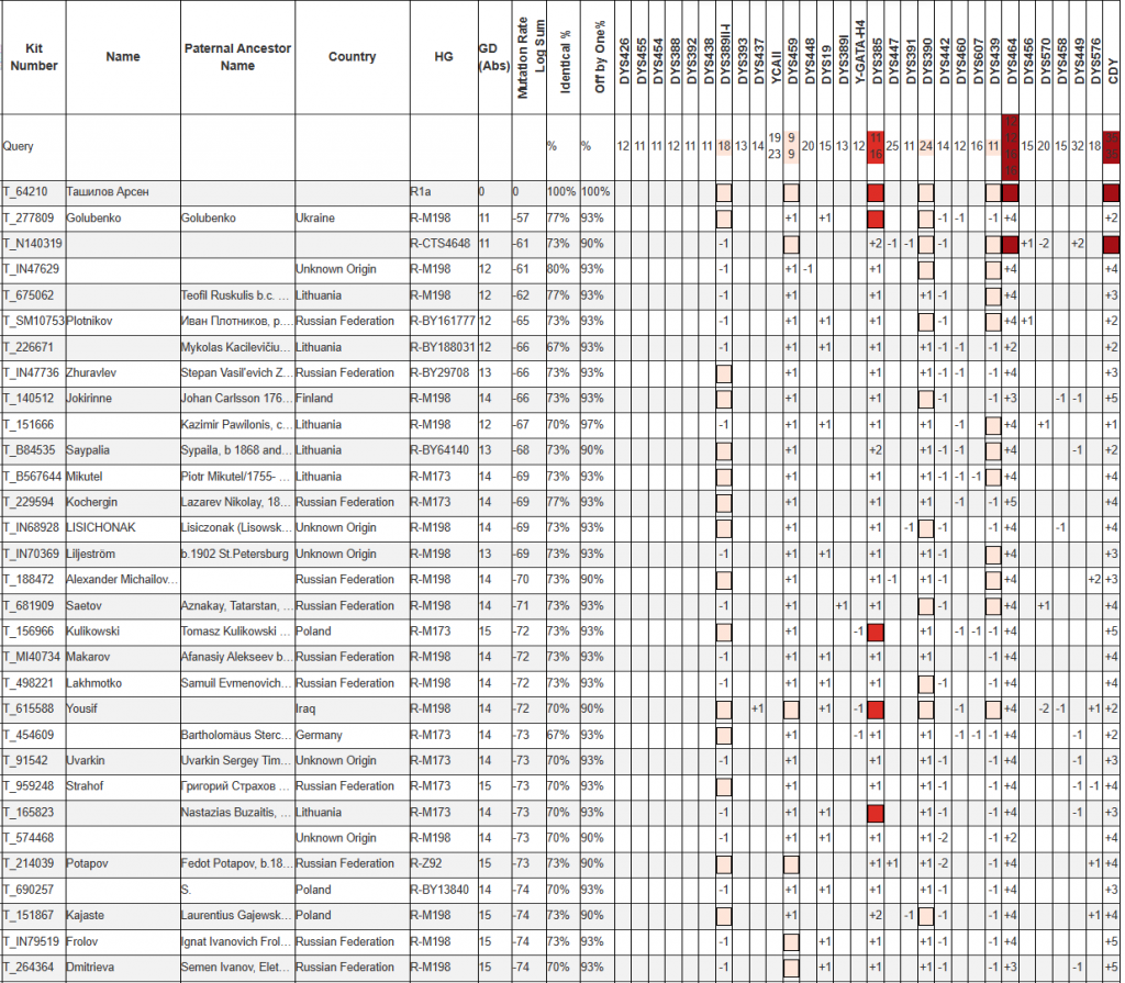 Исследовано 37 маркеров в лаборатории YSEQ.