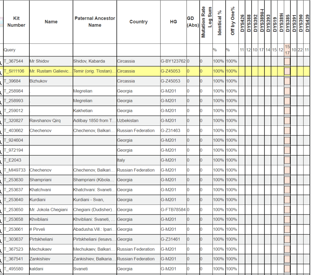 Исследовано 37 маркеров в лаборатории FTDNA.
