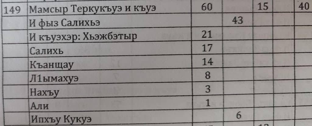 Также можно отметить, что в родном ауле Терчуковых называют Уадэшхуэхэ, вероятно из-за того, что в роду были люди занимавшиеся кузнечным ремеслом.