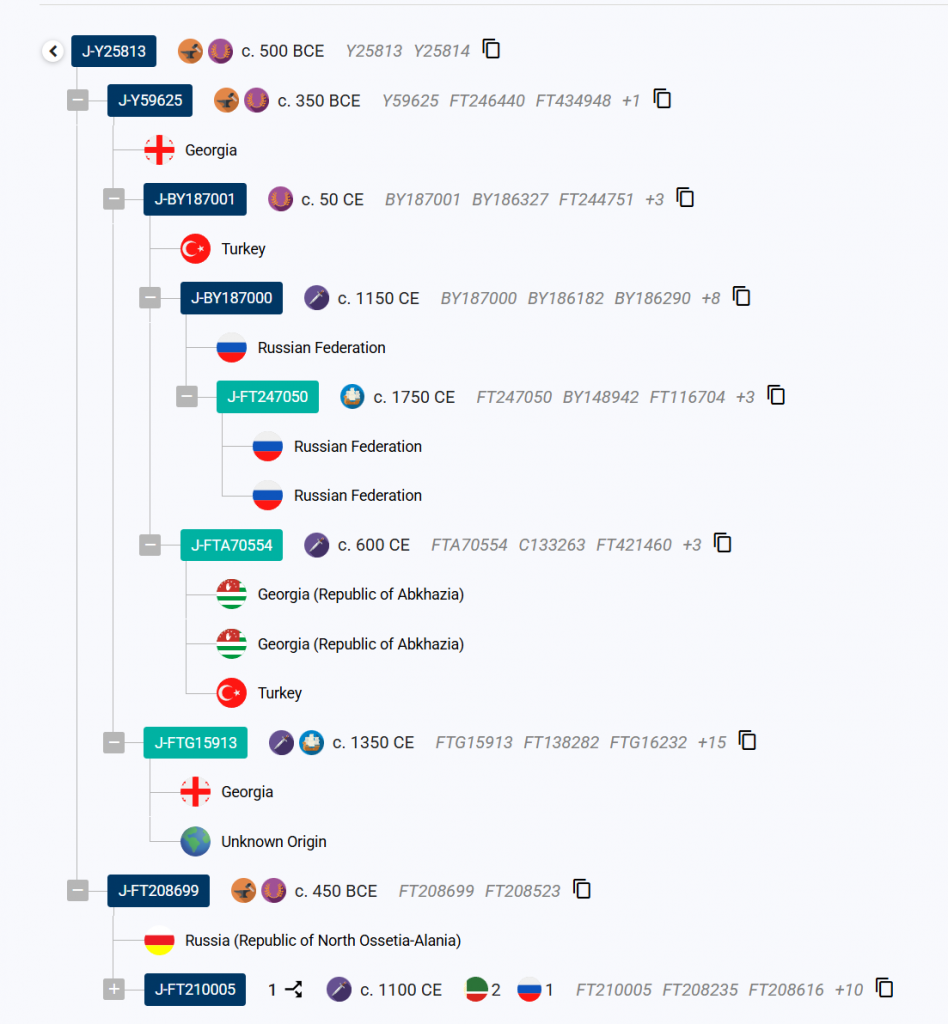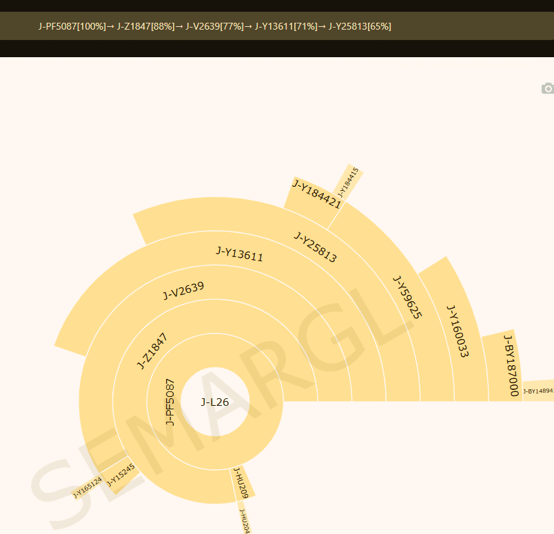 A0-T > A1 > A1b > BT > CT > CF > F > GHIJK > HIJK > IJK > IJ > J > J2 > J-M410 > J-PF4610 > J-L26 > J-PF5087 > J-PF5116 > J-PF5119 > J-CTS4800 > J-L558 > J-M67 > J-Z1847 > J-Z7671 > J-V2639 > J-Y13611 > J-Y25813 > J-Y59625 > J-Y160033
