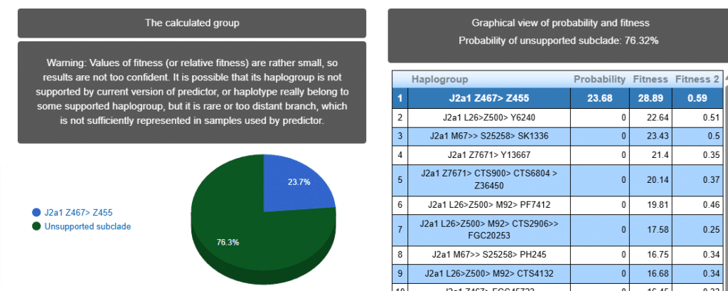 Выявлена гаплогруппа J2a-M67, субклад V2639 >> Y160033