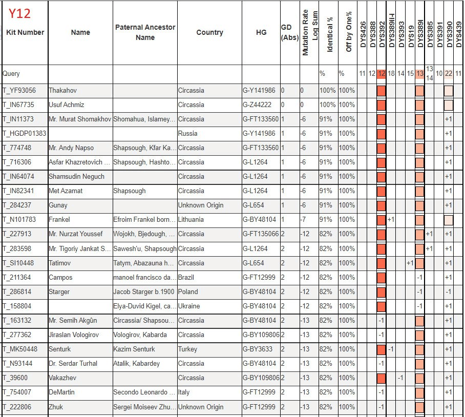 У них полное совпадение на 12 маркерах (см. приложенные скрины). К сожалению у Ачмиз только Y12 тест, но редкость значений по ряду маркеров позволяет предположить возможное близкое родство.