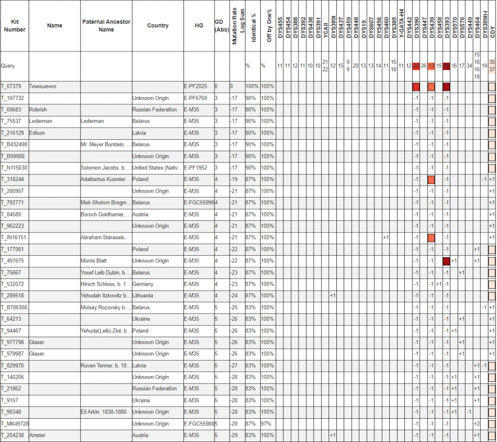 Поиск STR-совпадений в базе STR Match Finder помогает найти потенциальных родственников по мужской линии среди других протестированных из той же популяции. Мерой близости при этом служит генетическая дистанция, зависящая от числа мутационных различий