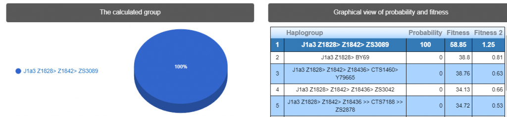 Выявлена гаплогруппа J1, суубклад Z1842 >> ZS5658.