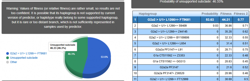 Выявлена гаплогруппа G2a2. Субклад G-L1264 >> Y32924