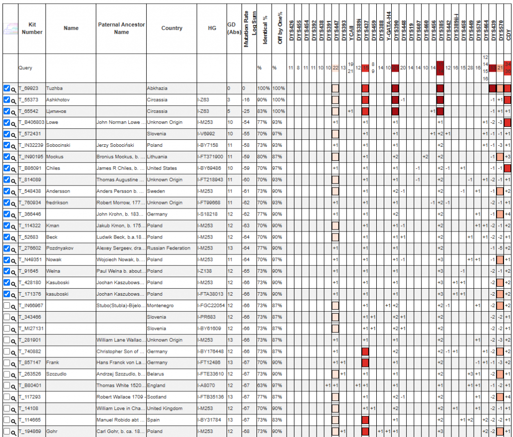 Исследовано Y37 маркеров в лаборатории YSEQ.