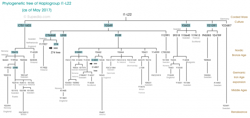 Гаплогруппа: I1 > I-Z2893 > I-L22