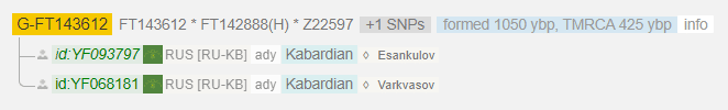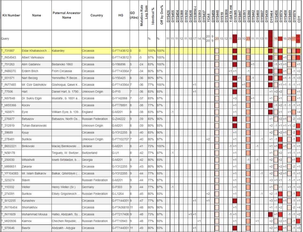 Наиболее близкое совпадение с другим кабардинцем Есанкуловым. Дистанция между ними ~ 425 лет.