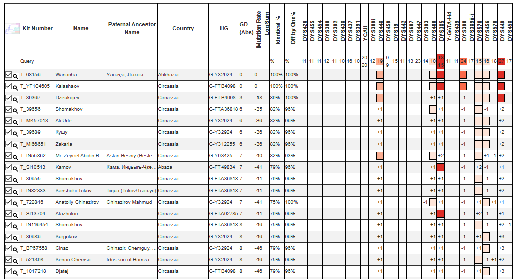 Поиск STR-совпадений в базе STR Match Finder помогает найти потенциальных родственников по мужской линии среди других протестированных из той же популяции. Мерой близости при этом служит генетическая дистанция, зависящая от числа мутационных различий