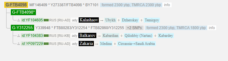 Гаплогруппа: G2a2-L1264 >>G-Y32924 > G-FTB4098