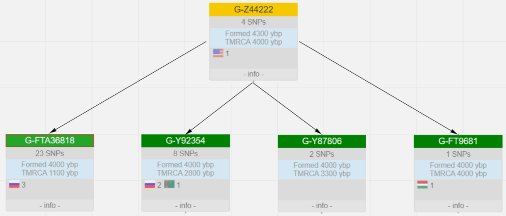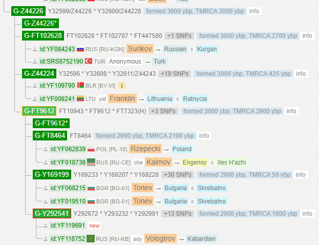 Одна из этих линий FT9681 в свою очередь делится на несколько линий. Крупнейшая из них Y32924. Временные рамки все этих веток близки к цифре 4000 лет назад.