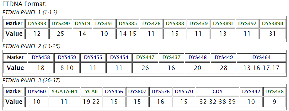 Такой набор называется гаплотипом. Соответственно набор из 37 маркеров это 37 маркерный гаплотип.