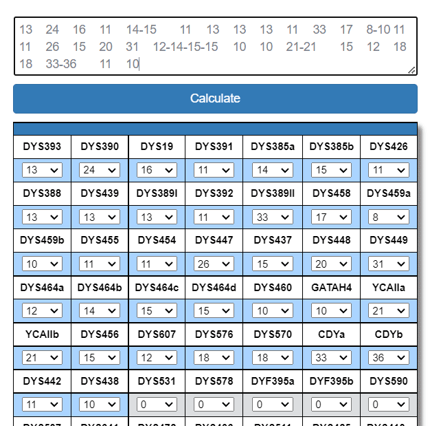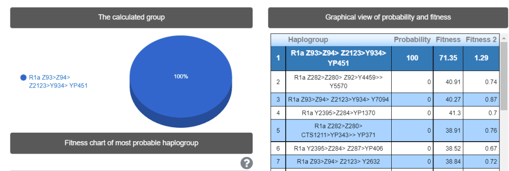 Здесь надо выбрать нужную гаплогруппу, в данном примере R1a и повторно нажать на Calculate.