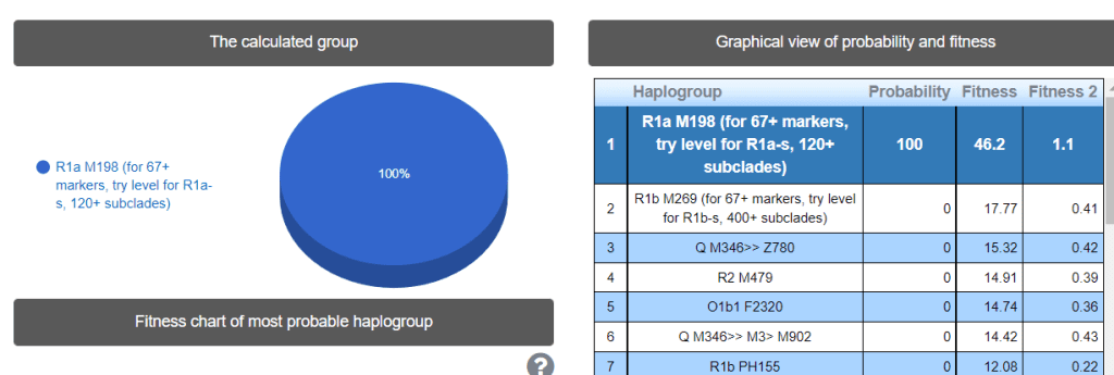 Nevgen это сервис который на основе набора маркеров предсказывает гаплогруппу, иногда с высокой детализацией.