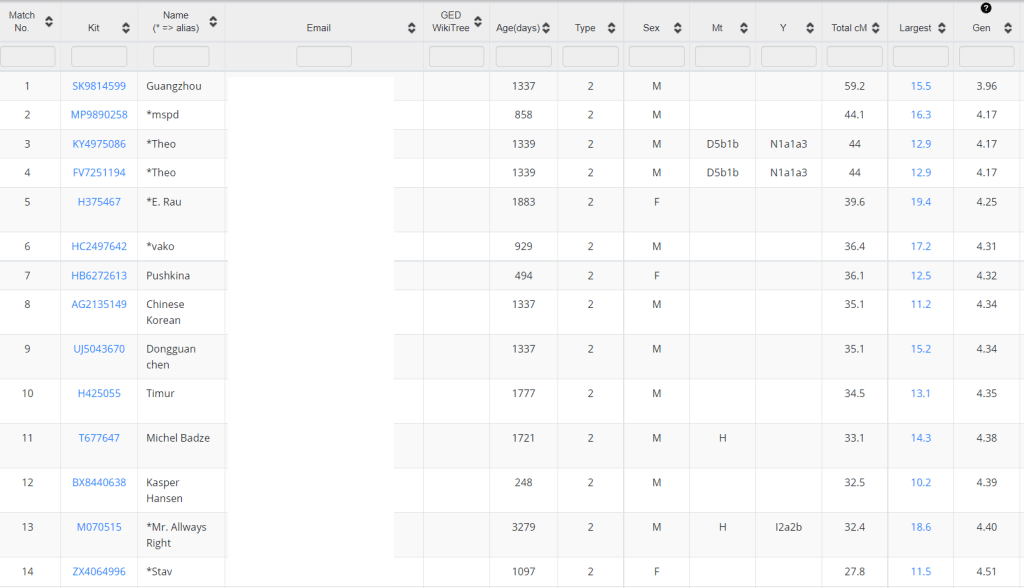 Совпадения по 12 маркерам имеет смысл анализировать только для выявления потенциально близких результатов среди тех у кого самые неглубокие тесты. В данном случае не выявлено никого кто мог быть потенциально близок.