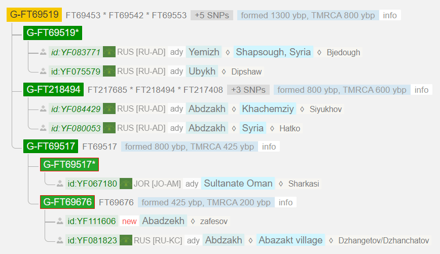 Гаплогруппа G2a2. Наиболее глубокая выявленная линия G-L1264 > Y87806 > FT69676