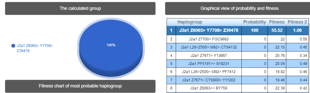 Выявлена гаплогруппа J2a. Наиболее вероятный субклад Z6065 >> P81