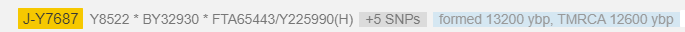 Дистанция до последнего общего предка Y7687 ~ 12,5 тыс. лет.