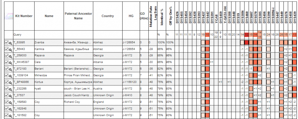 Поиск STR-совпадений в базе STR Match Finder помогает найти потенциальных родственников по мужской линии среди других протестированных из той же популяции. Мерой близости при этом служит генетическая дистанция, зависящая от числа мутационных различий